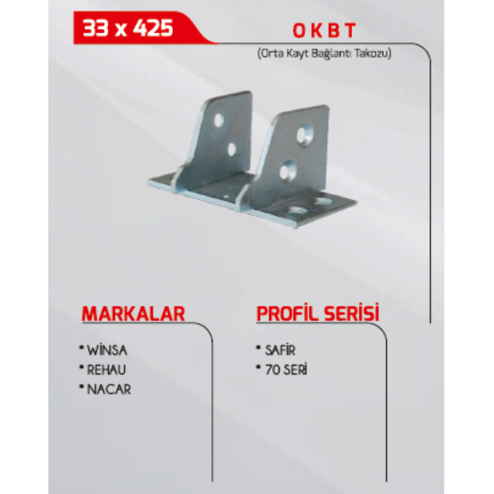 Pvc orta kayıt profillerinde kullanılır 33/425 ölçülerindedir