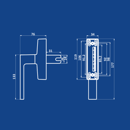 Std. Kilitli Pencere Kolu Çiftli Beyaz